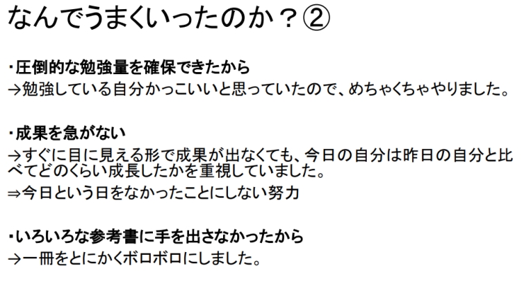 「勉強した気になっていた」と説明してくれました。