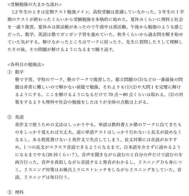 自身の高校入試の時の勉強法、
