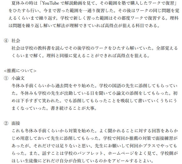 作文の書き方、社会の暗記の仕方、点数の取り方など