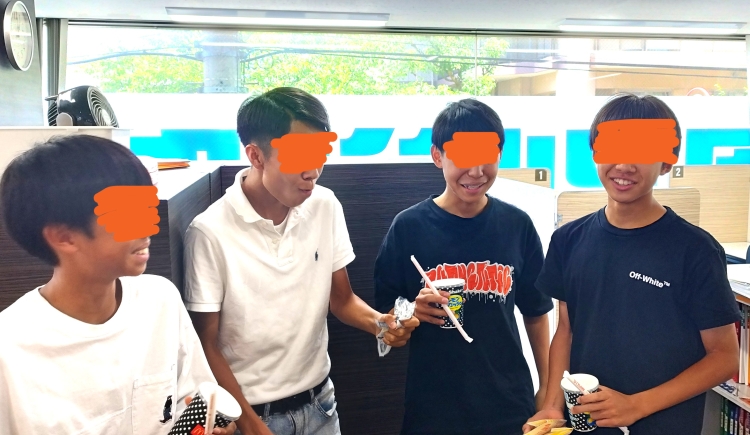 昼休みの時間に、労いのためマックシェイクを1人1個プレゼントしました。