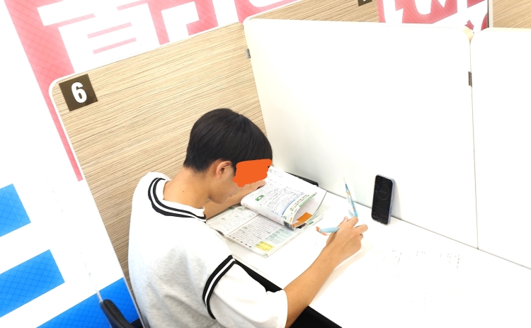 篠崎中3年男子、こちらも学校ワークをひたすら解く。