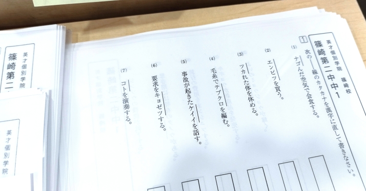 テスト対策プリントは、各学校、それぞれの学年ごとに用意しています。