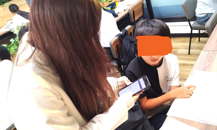 講師がスマホを使い得点を管理、今までの出来具合も把握しています。