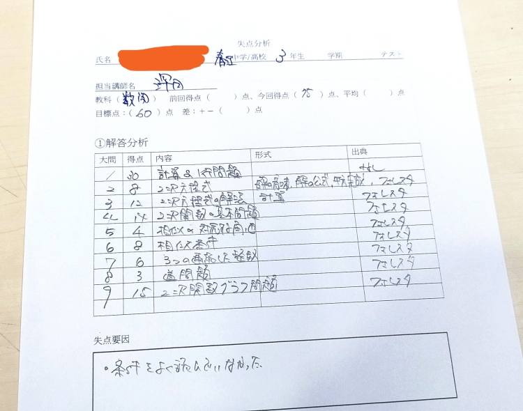② 個別指導ならではの「失点分析」