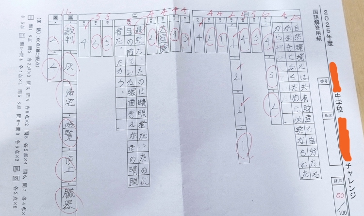 こちらの生徒さん、中学受験の志望校の過去問で、8割取れるようにまでなりました。