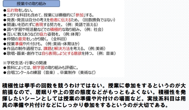 ・授業中の姿勢・発言が評価に直結