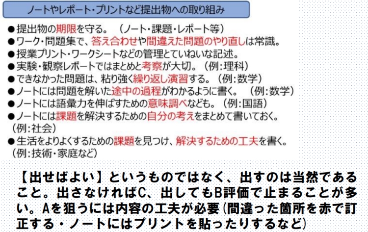 ・クラス順位・提出物の完成度も重視