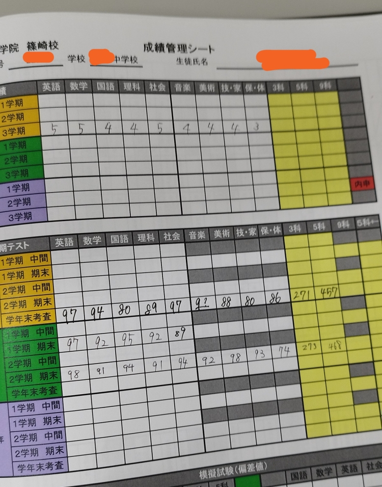 ※あくまで目安ですが、篠崎周辺の中学校でよくあるラインです。