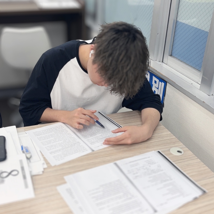 横で高校生のお兄さんが取り組んでいる姿を見て