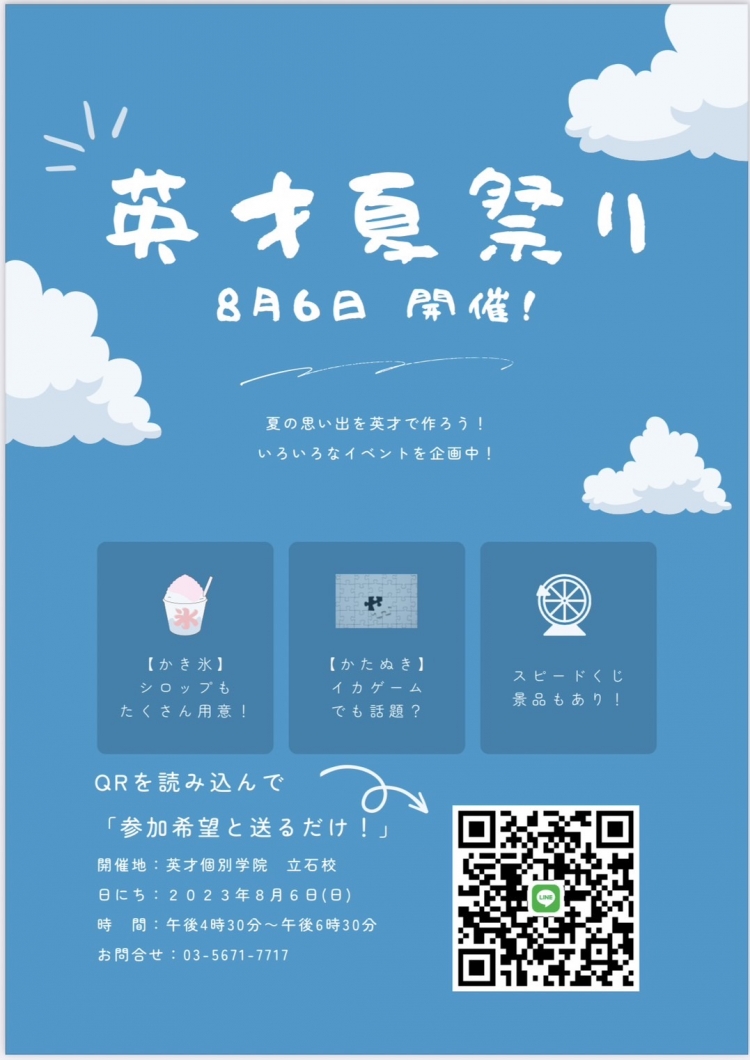 「英才夏祭り」開催! 【個別指導塾 英才個別学院 立石校】
