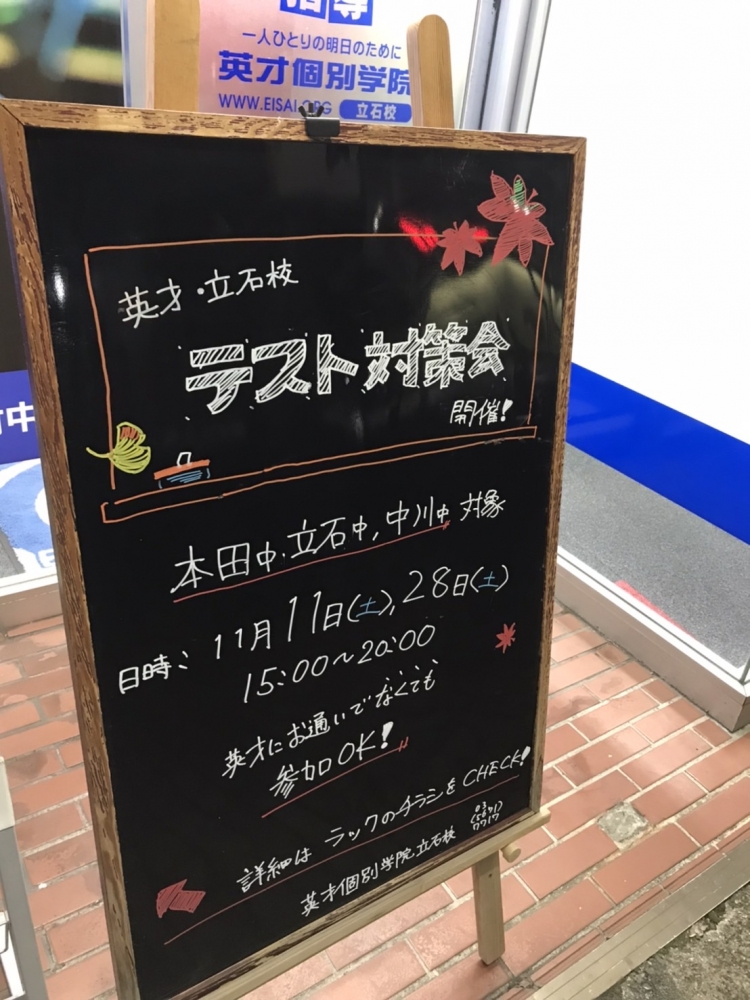テスト対策会実施期間は、教室前イーゼルにて告知しております!
