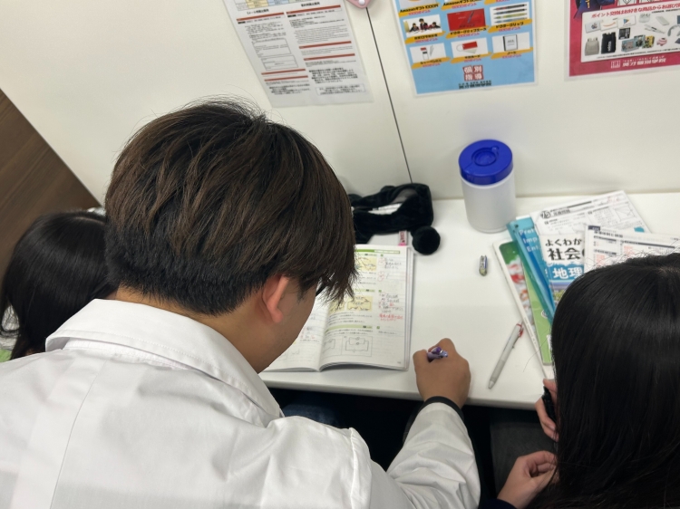 みんな集中してテスト勉強に取り組み、わからないところは積極的に講師に質問。講師も一人ひとりに寄り添い、苦手な単元を丁寧に解説しました。