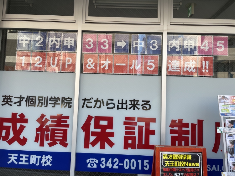 天王町教室からなんと2年時より12UPして45(オール5)を取得した生徒が!!!