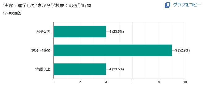 進学後は「1時間以上かかる」人も見受けられました。