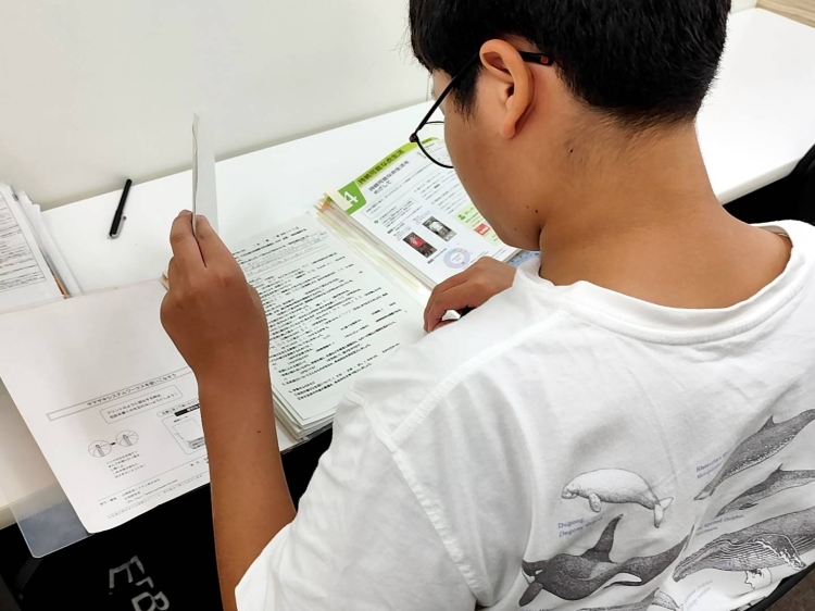 自分で塾のテキストをコピーして、テスト範囲を確認中!