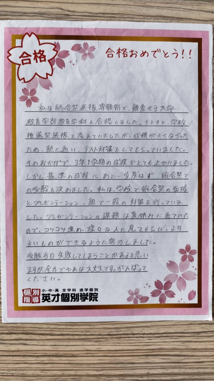 鎌倉女子大学合格おめでとう!