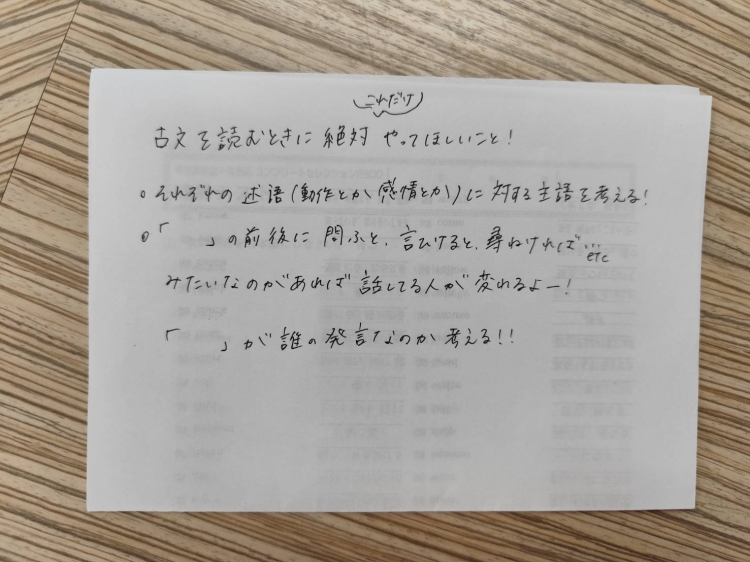 メモを書いてくれる先生もいます✉