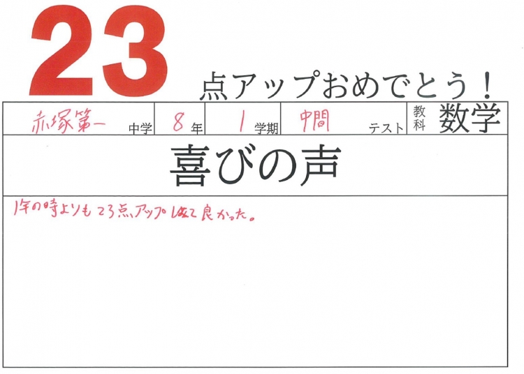 こちらの生徒も同じ中学&生徒出身の先生と頑張ってきました!
