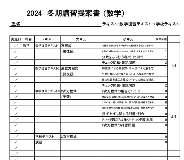 本来であればこの時期から学年末テストに向けた演習をおこなうのですが、東京中央校では1月中旬まで復習の授業を展開しています。