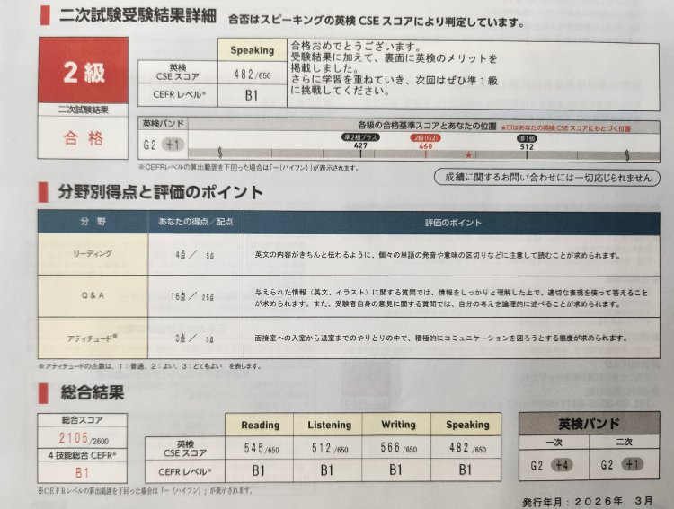 改めて、今回の英検2級合格、本当におめでとうございました!